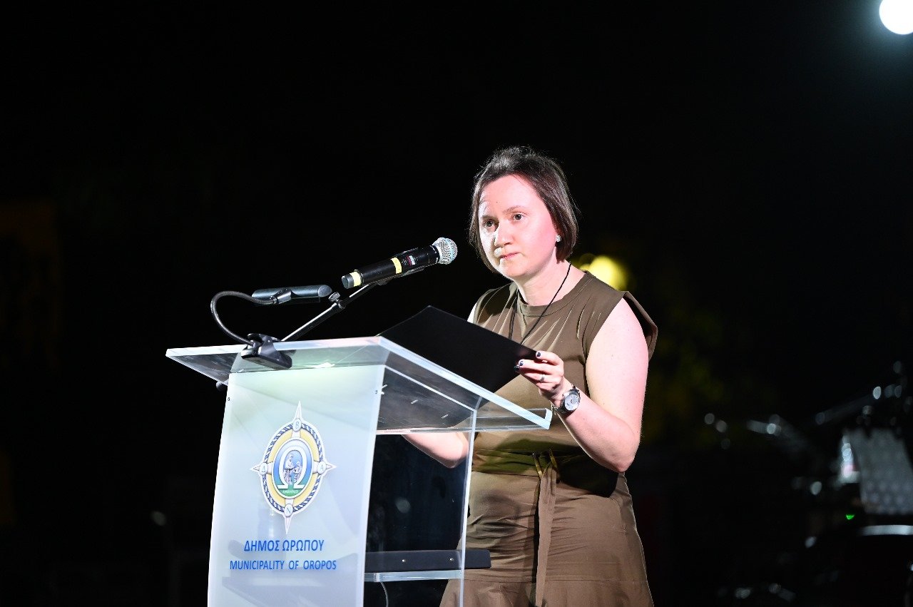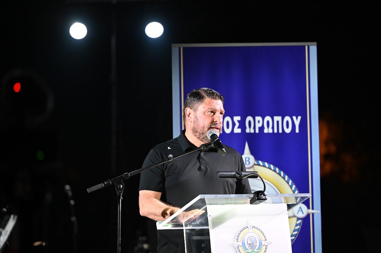 Από εδώ, σε συνεργασία με τον Δήμο Ωρωπού, θέλουμε να διαβεβαιώσουμε πως οι αρχές και οι αξίες που εκείνος πρέσβευε και υπηρέτησε με σεβασμό, οι αγώνες για εθνική ομοψυχία, ενότητα, ελευθερία και αντίσταση σε ό,τι μας προσβάλλει, μας πληγώνει και μας αδικεί, αποτελούν τη δική μας παρακαταθήκη. Ας θυμόμαστε τον Μίκη όχι μόνο με σεβασμό, αλλά και με ευθύνη. Ας κρατάμε ζωντανή τη φλόγα του ελληνικού πολιτισμού και του αγώνα για τον άνθρωπο».