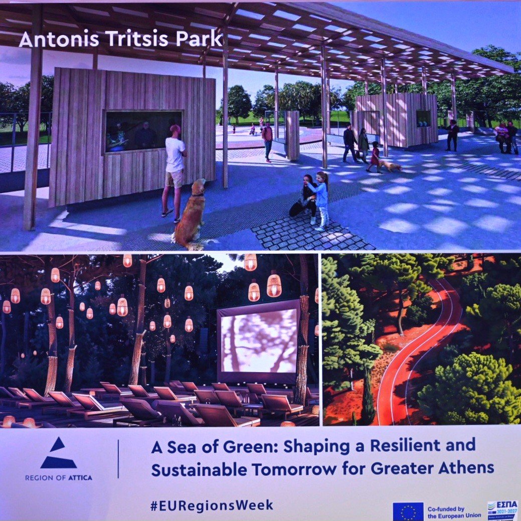 Πλήθος κόσμου στα εγκαίνια του Περιπτέρου της Περιφέρειας Αττικής στην 23η Ευρωπαϊκή Εβδομάδα Περιφερειών και Πόλεων – Ο Περιφερειάρχης, μαζί με την Πρόεδρο της Επιτροπής Μεταφορών και Τουρισμού του Ευρωπαϊκού Κοινοβουλίου Ελίζα Βόζεμπεργκ, παρουσίασε το νέο Μητροπολιτικό Πάρκο «Αέναον», καθώς και το ολιστικό πρόγραμμα αναβάθμισης των τριών Μητροπολιτικών Πάρκων της Αττικής