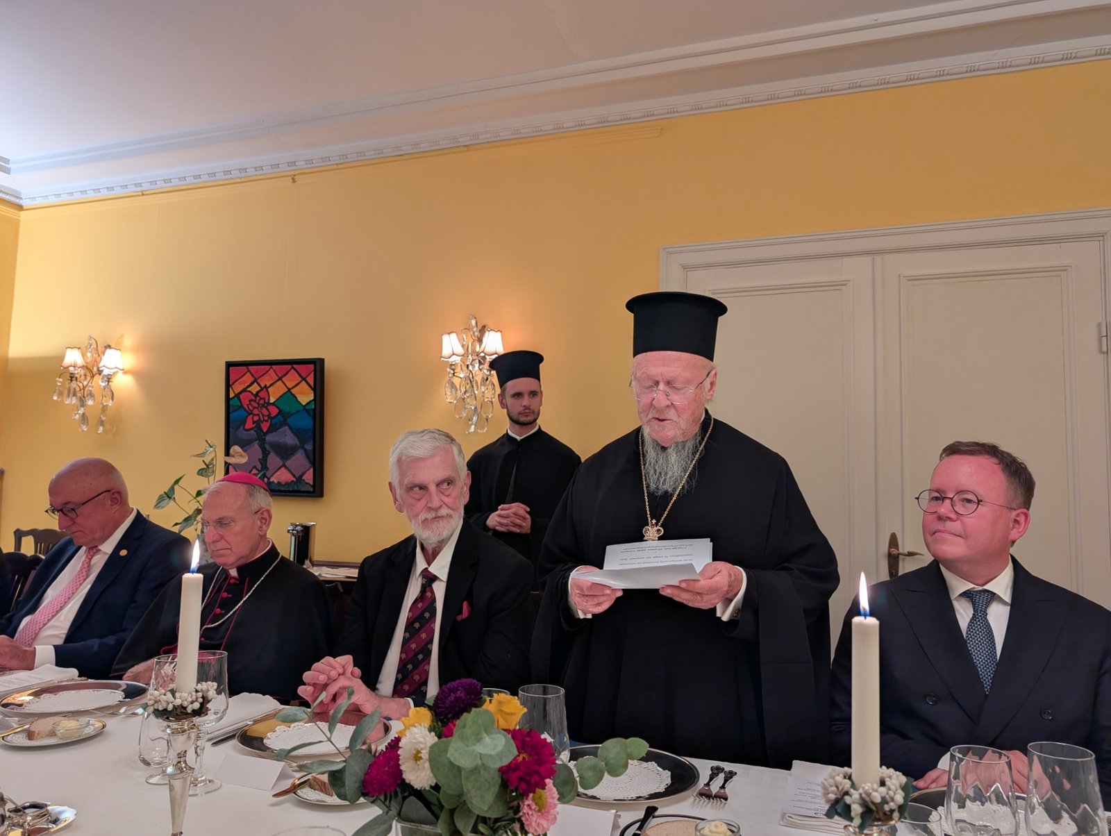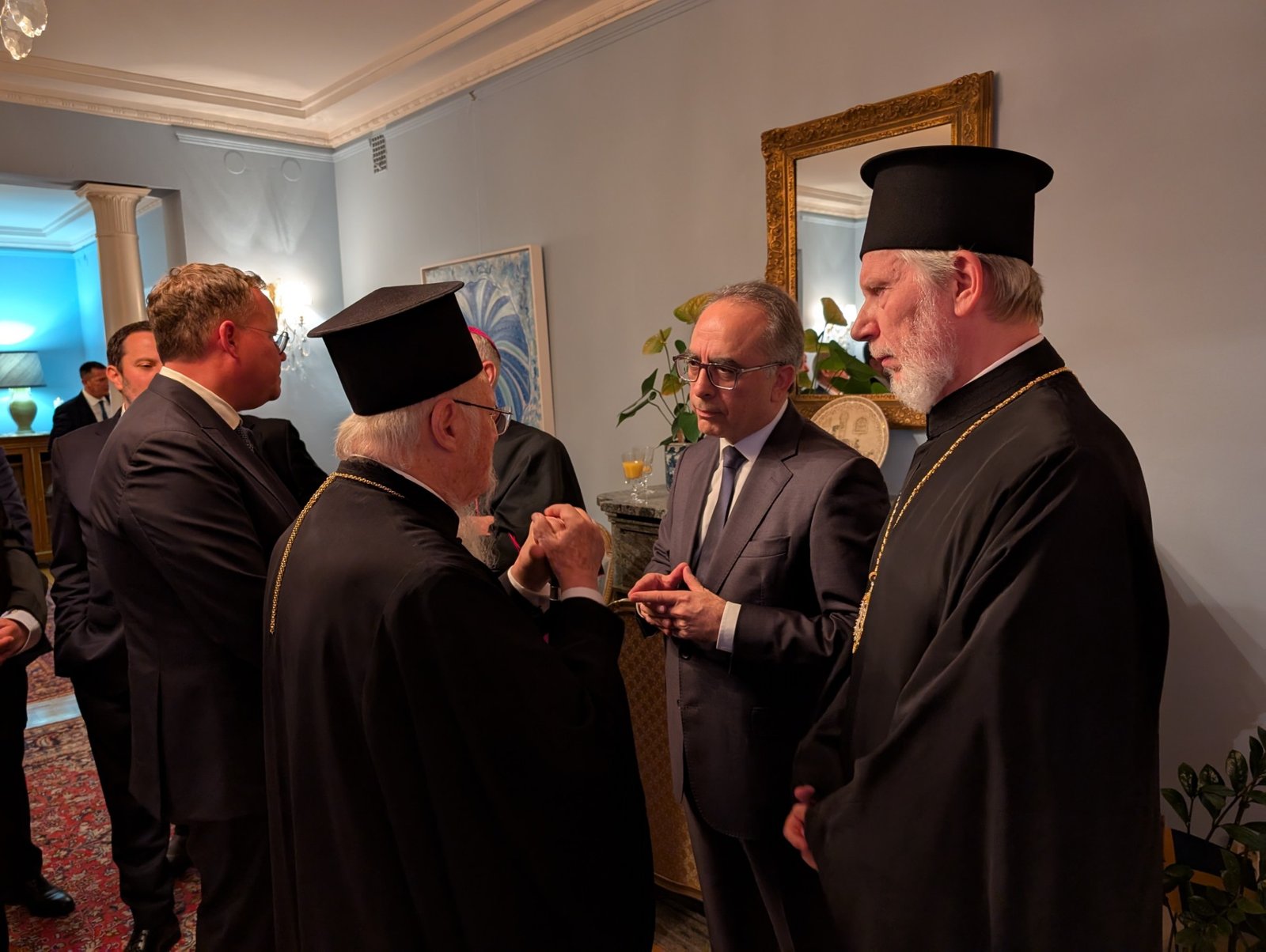 The day concluded with a formal dinner in honor of the venerable Head of Orthodoxy, hosted by Her Excellency the Greek Ambassador, Ms. Aikaterini Foundoulaki, at the Ambassadorial Residence in Stockholm.