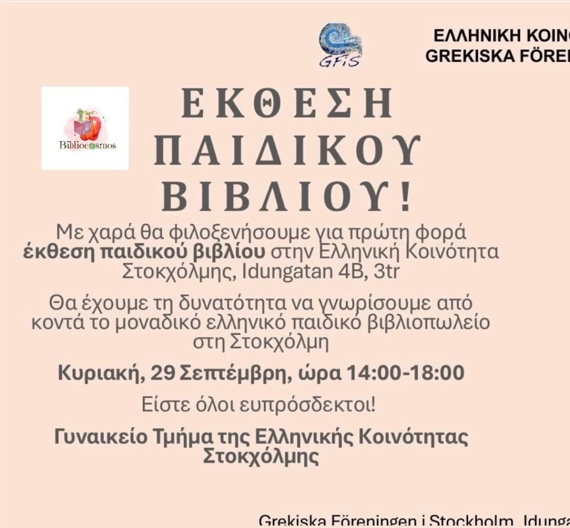 Την Κυριακή 29 Σεπτεμβρίου, για όσους ενδιαφέρονται, μπορείτε να βρεθείτε στην πρώτη έκθεση παιδικού βιβλίου. …