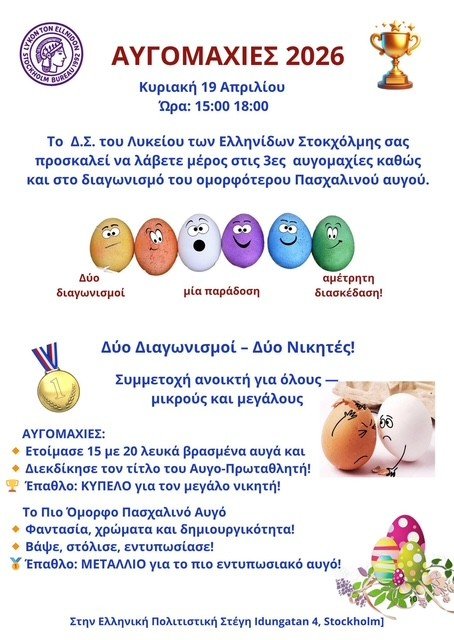 Με άρωμα Πάσχα και διάθεση γιορτινή, το Λύκειο Ελληνίδων Στοκχόλμης, προσκαλεί τους φίλους του σε …