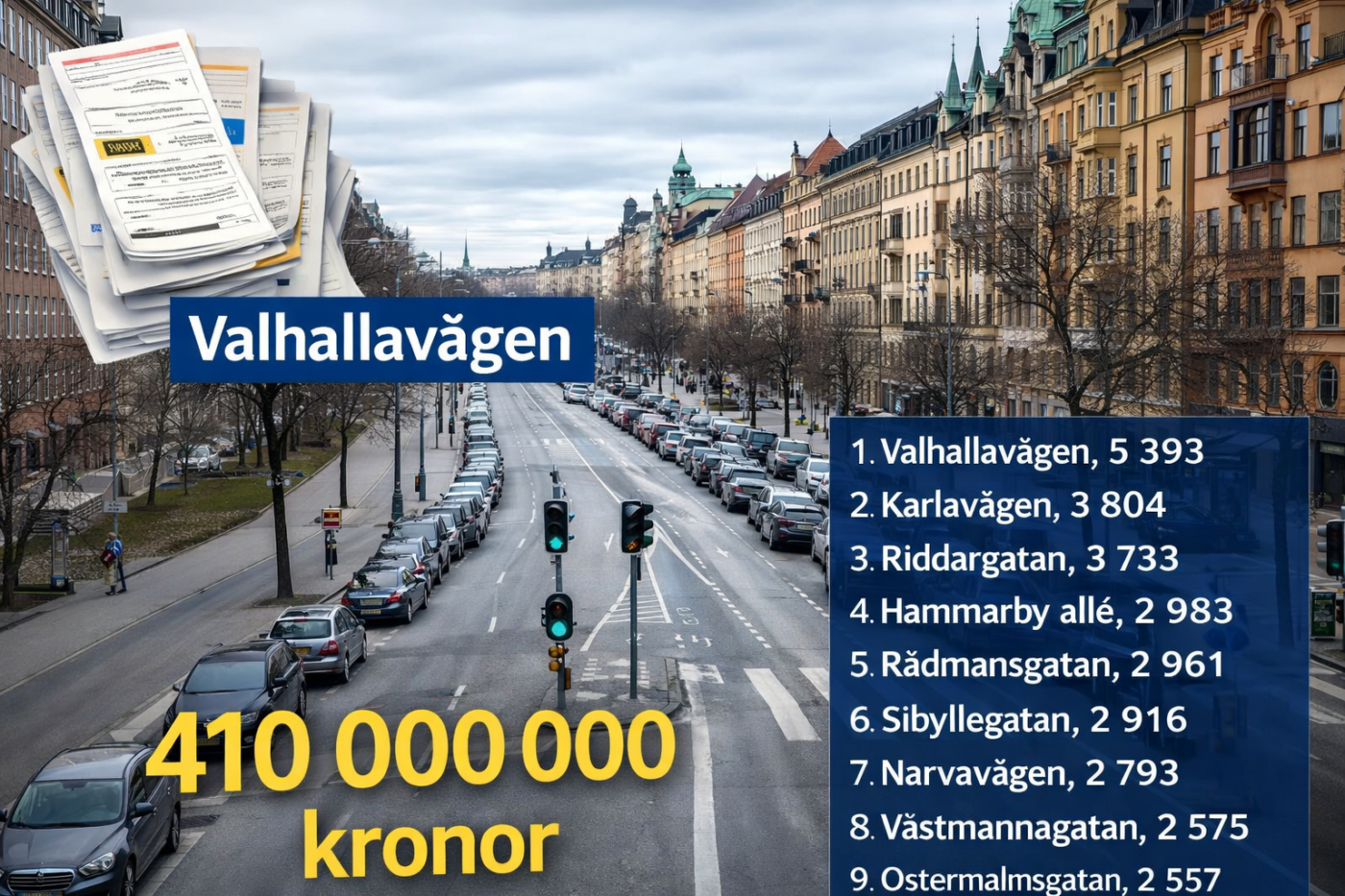 410.000.000 κορώνες σε πρόστιμα στάθμευσης μια οδός στη Στοκχόλμη ξεχωρίζει.
