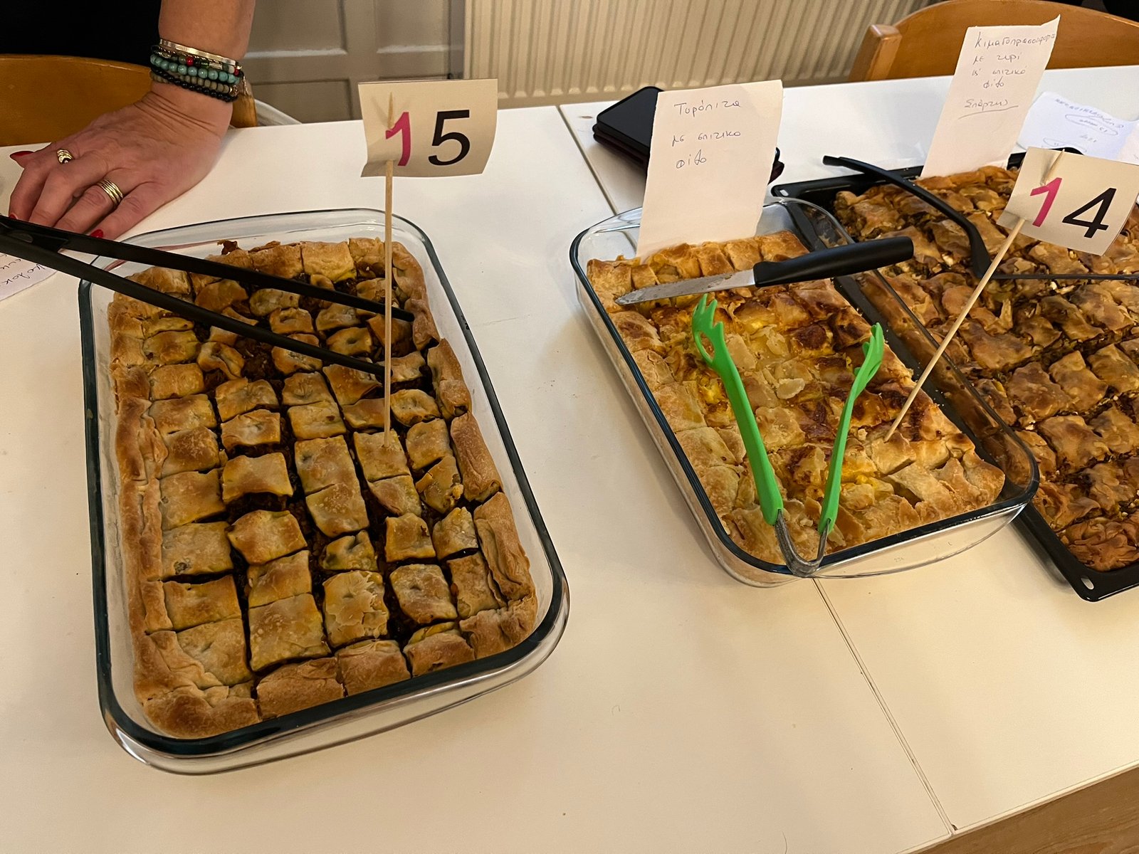 Η Κική, η Ελένη, ο Χρήστος, η κα. Γεωργία και οι υπόλοιποι διαγωνιζόμενοι, άλλοι πρωτοεμφανιζόμενοι και άλλοι γνώριμοι από προηγούμενες χρονιές, μας παρουσίασαν τα εδέσματά τους πριν από την έναρξη της εκδήλωσης. Όλοι τους έδειχναν ενθουσιασμένοι, περήφανοι και συγκινημένοι, όπως θα ακούσετε και στη συνέχεια.