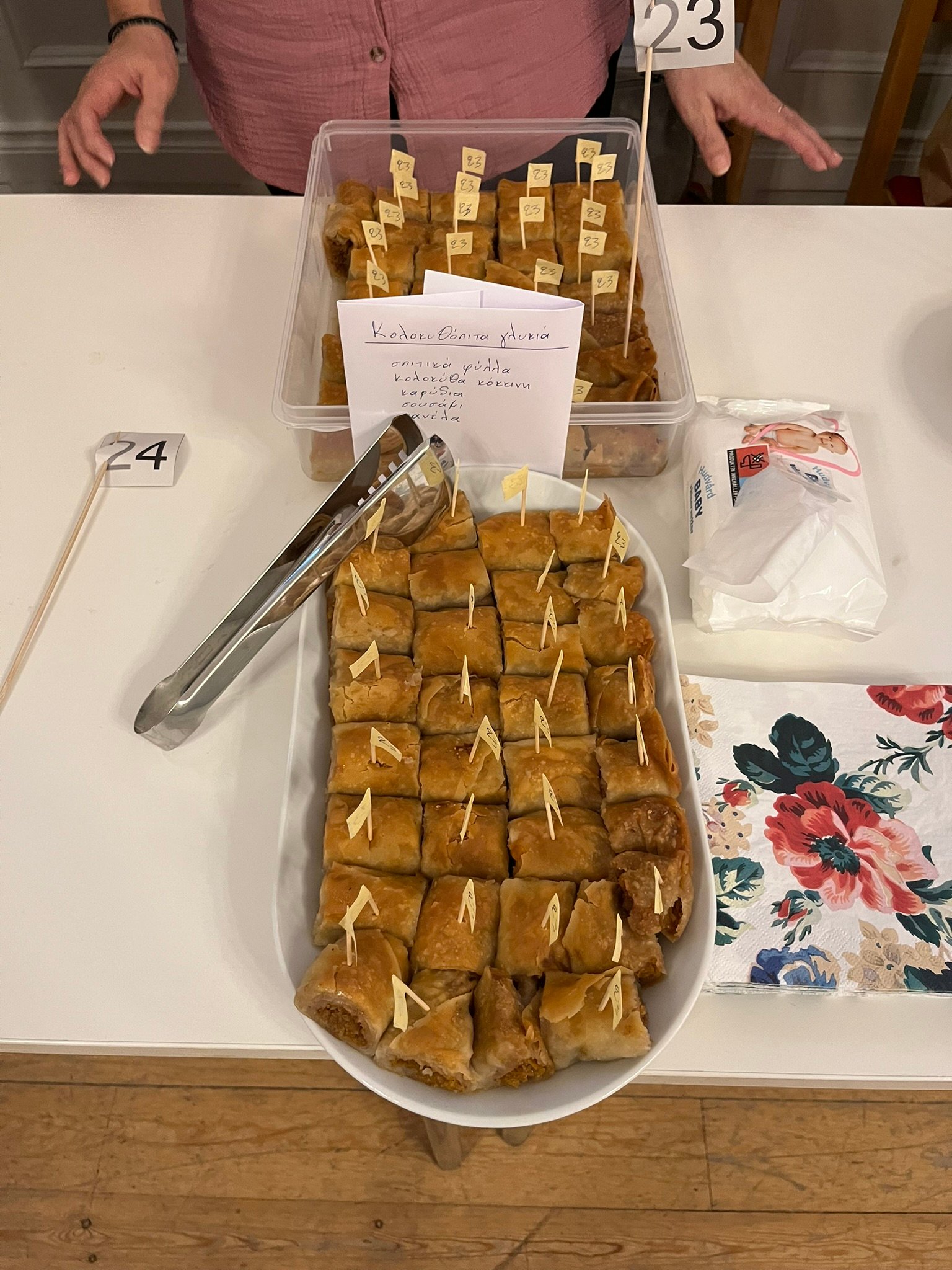 Μια από τις πιο όμορφες στιγμές της εκδήλωσης ήταν η ζωντανή παρουσίαση της κυρίας Ευσταθίας, η οποία μοιράστηκε την τέχνη της παραδοσιακής ηπειρώτικης πίτας, δείχνοντας βήμα-βήμα τον τρόπο που φτιαχνόταν εδώ και γενιές.