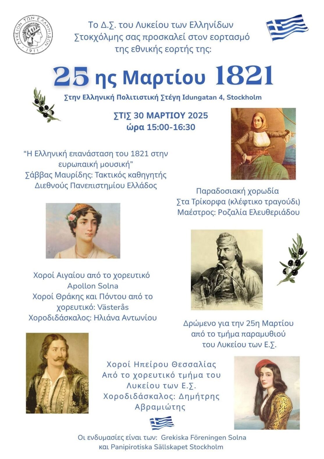 To Λύκειο Ελληνίδων Στοκχόλμης θα πραγματοποιήσει μια πολύ ωραία εκδήλωση στις 30 Μαρτίου στις 15.00 …